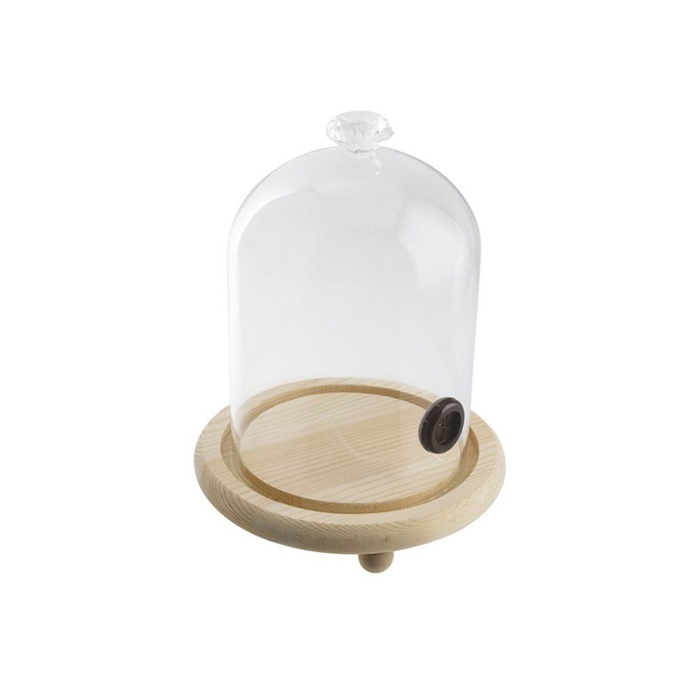 CLOCHE VETRO cm.12X11 C/BASE cm.15 LEGNO