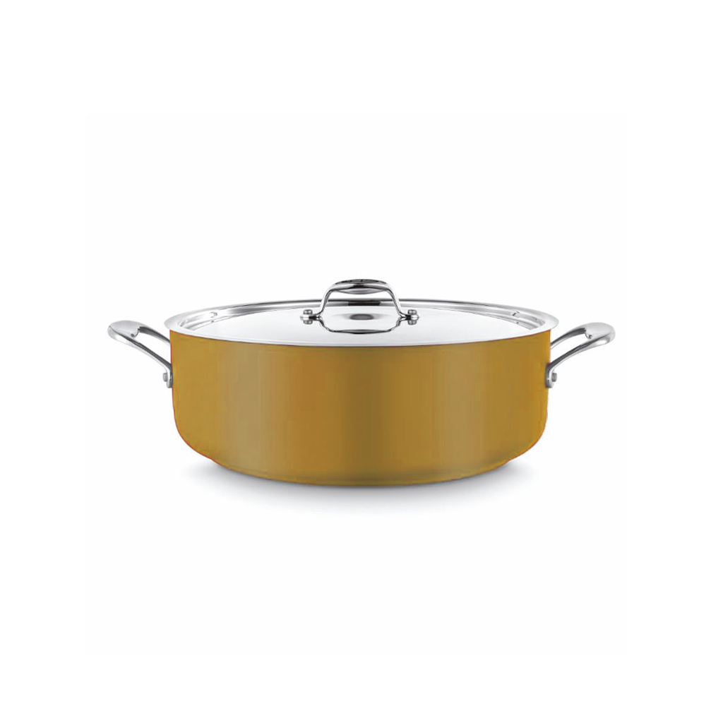 | Descrizione | CASS.BASSA 2/MANICI C/COP.cm.28 INOX-GIALLO INDUZIONE |