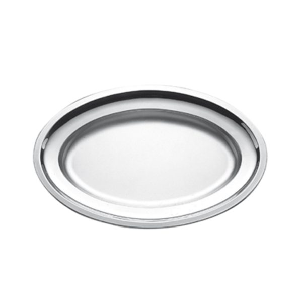 | Descrizione | VASSOIO OVALE C/BORDO ECO CM.49×33 INOX |